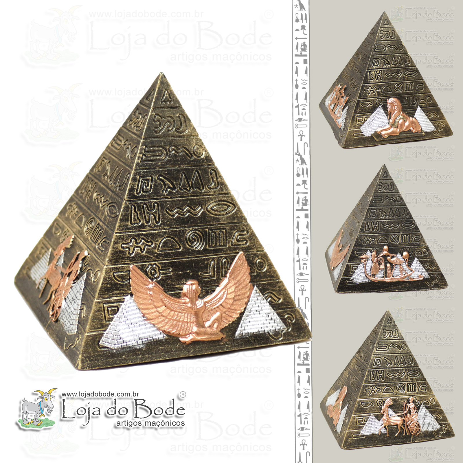 Pirâmide Egípcia com imagens em relevo, rica em detalhes e com pintura artesanal.